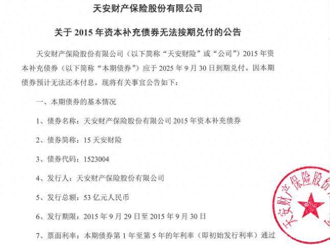 天安财险公告强调,只有在偿付后充足率不低于100%且能清偿其他债务时才可还本付息,目前不具备条件。